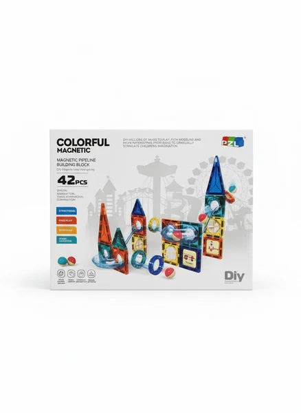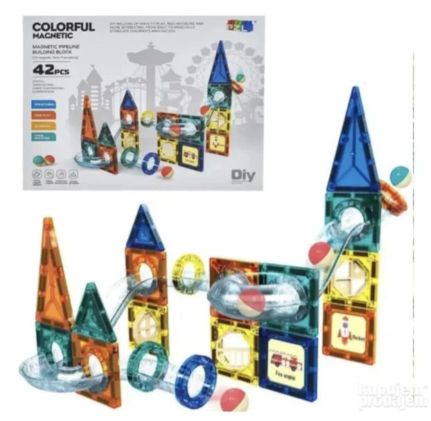 Colorful Magnetic set sa 42 magnetna elementa omogućava deci da grade kule, staze i kreativne konstrukcije dok razvijaju maštu i logičko razmišljanje 🧠✨